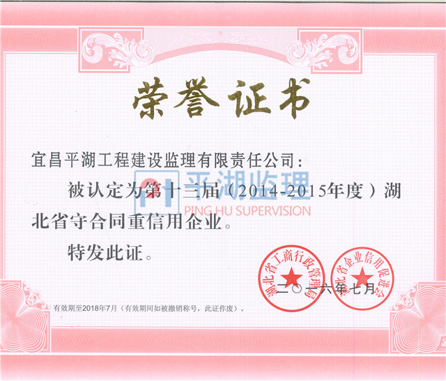 湖北省第十三屆(2014-2015年度)守合同重信用企業(yè)