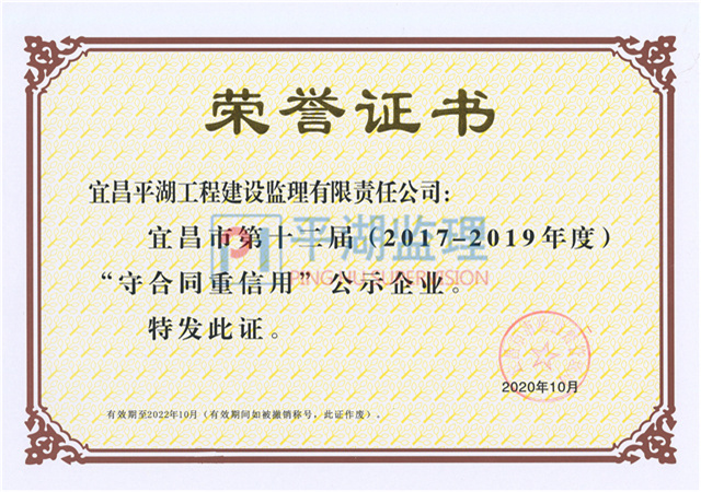 宜昌市第十二屆(2017-2019年度)守合同重信用企業(yè)
