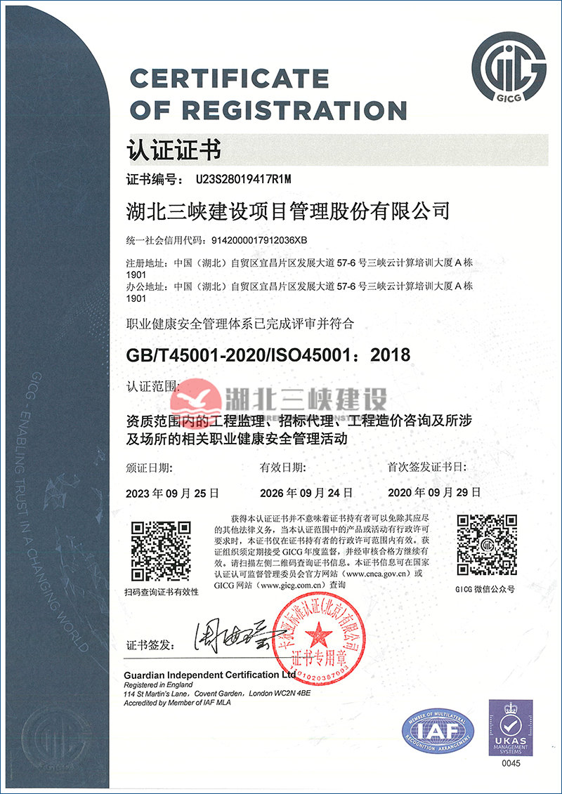職業(yè)健康安全管理體系證書