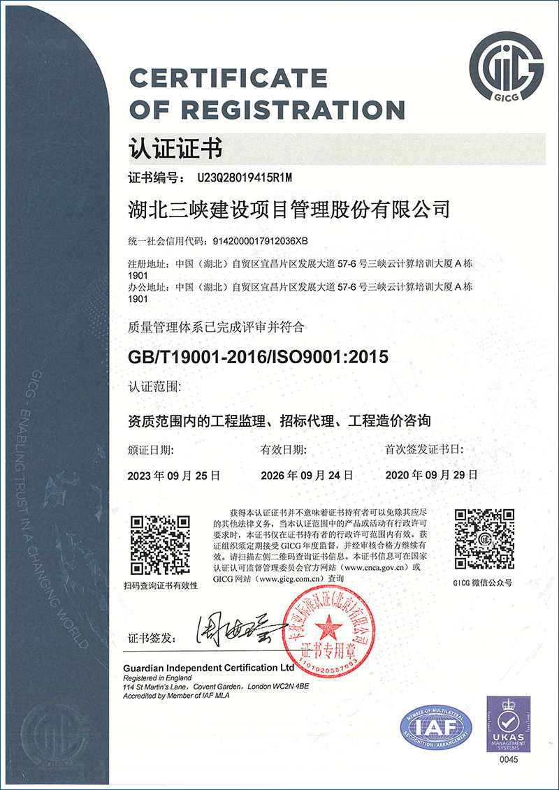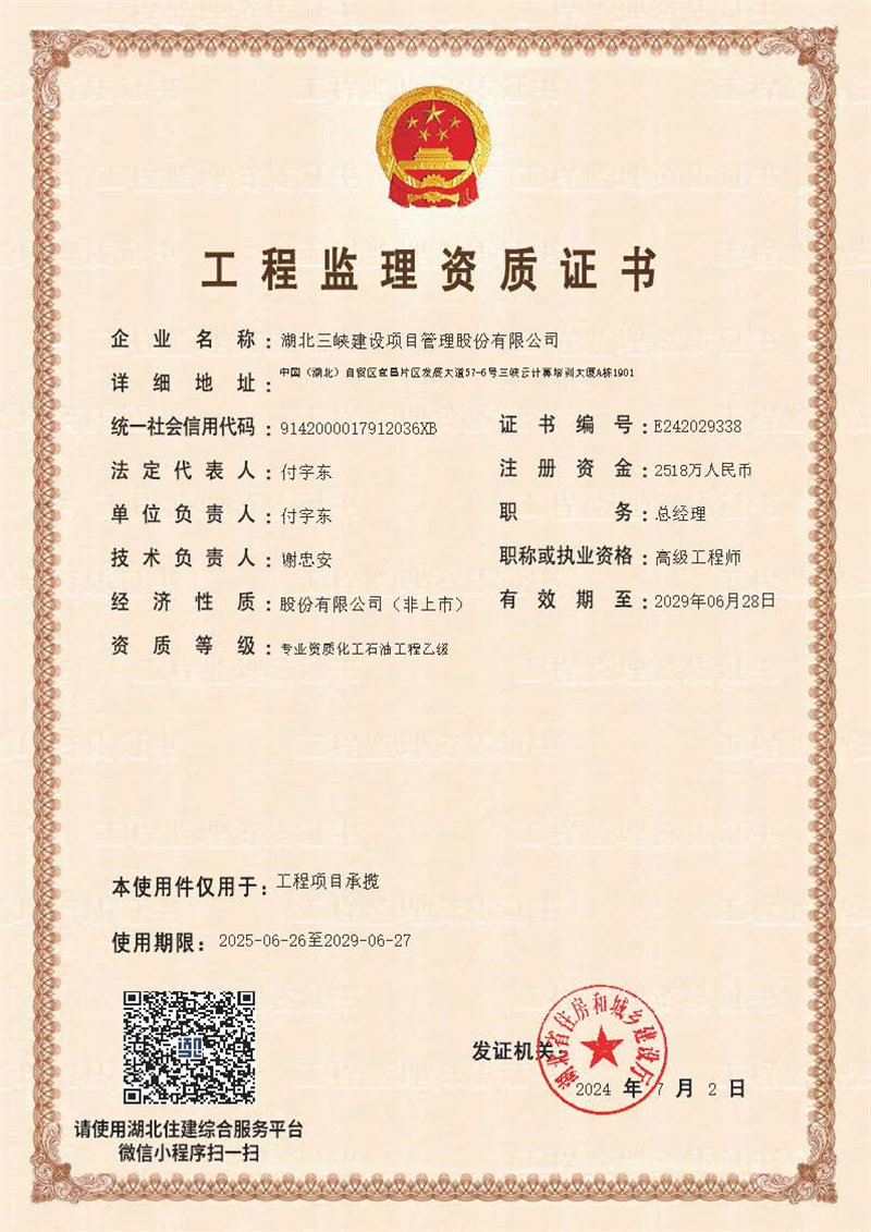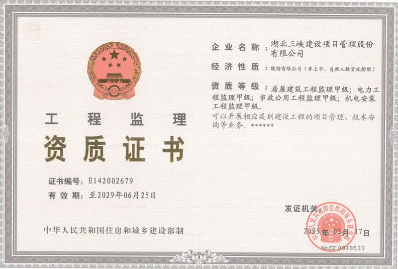 在新時(shí)代高質(zhì)量發(fā)展戰(zhàn)略的指引下,湖北三峽建設(shè)項(xiàng)目管理股份有限公司、宜昌平湖工程建設(shè)監(jiān)理有限責(zé)任公司、湖北慧博工程造價(jià)咨詢有限公司于2023年6月2日通過吸收合并方式完成強(qiáng)強(qiáng)整合的戰(zhàn)略轉(zhuǎn)型,成功開啟了管理咨詢服務(wù)能級(jí)全面提升的新篇章。公司具有房屋建筑工程、市政公用工程、機(jī)電安裝工程、電力工程等4項(xiàng)工程監(jiān)理甲級(jí)資質(zhì)及公路工程、水利工程、石油化工工程等3項(xiàng)工程監(jiān)理乙級(jí)資質(zhì),以及工程造價(jià)咨詢甲級(jí)、工程招標(biāo)代理、 政府采購代理、工程咨詢、司法鑒定等資質(zhì)(資信)。能夠?yàn)橥顿Y人提供全過程工程咨詢、建設(shè)項(xiàng)目管理、工程建設(shè)監(jiān)理、工程造價(jià)咨詢、項(xiàng)目決策咨詢、工程運(yùn)維咨詢、招標(biāo)代理及BIM 技術(shù)、無人機(jī)技術(shù)等貫穿建設(shè)項(xiàng)目全過程、全方位、多元化的“菜單式”咨詢服務(wù)。